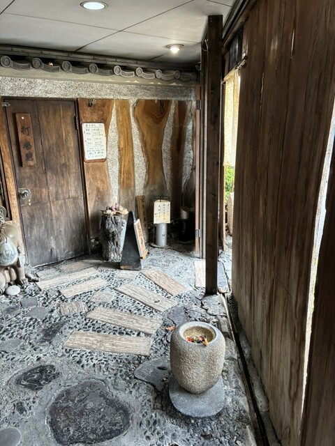 最後に店主が入口で蕎麦臼で蕎麦の実を