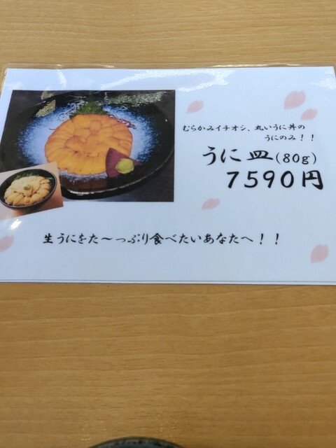 メニューはいつも注文する物にしようと思ってましたが、お茶を運んできた店員さんから「今日は生マグロの中落ちがありますよ」とのこと。その誘いに乗って注文、他はいつもの生ウニ丼(S)とウニのグラタンをお願いしました。
