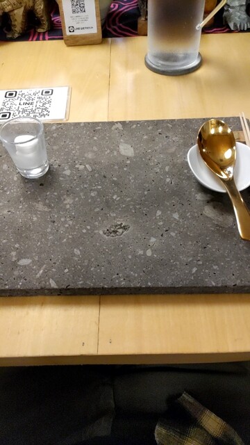 座席も前回同様に大きな楕円形テーブル席。静かで落ち着いた雰囲気の店内で先客たちは黙々と食事をしております。