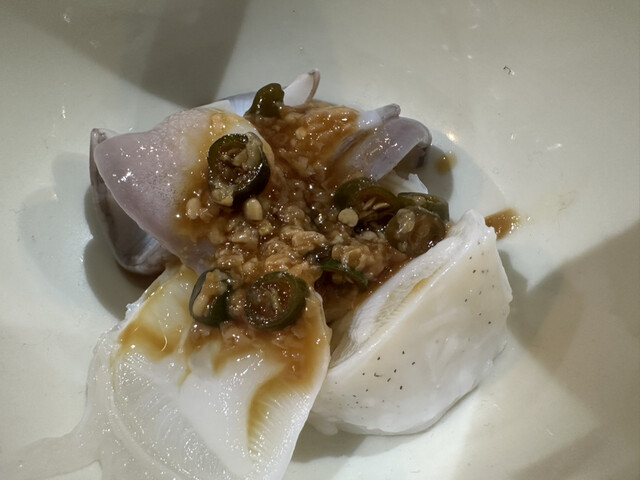 さらに、ラストのマダコにかけた青唐辛子塩麹と、土佐の三杯酢?これ単体で八海山の千年こうじに勝てるよ。(ワタシ初めて食べた時、一瓶全て食べた品)。