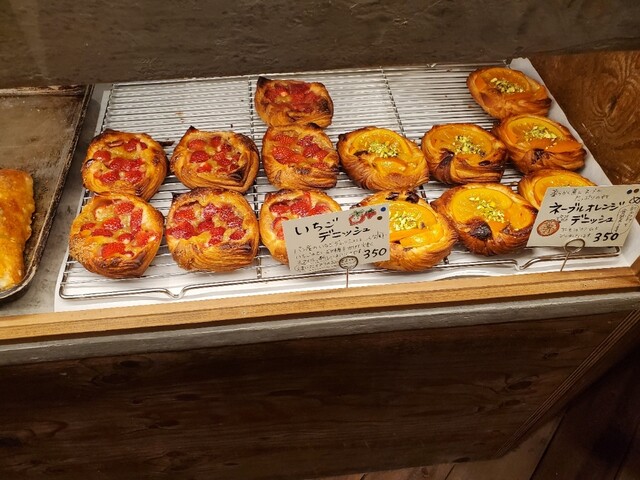 ネーブル オレンジ、いちご共に焼き上がったデニッシュ生地にローストして後乗せ?