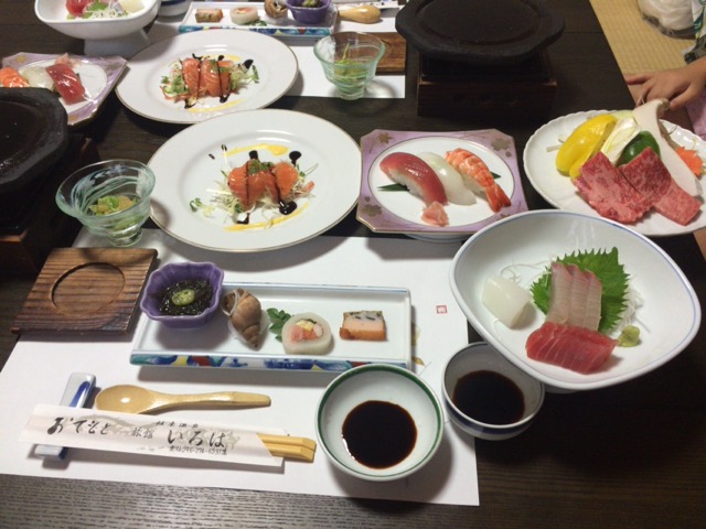 淡路島の激安激ウマ温泉旅館「いび」一日目の夕食(淡路牛&海の幸)編