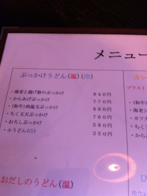 ぶっかけうどんメニュー