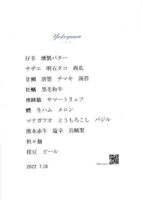 (金額はコラボイベントだったため、Yokoyamaの料理分の金額は不明m(__)m)