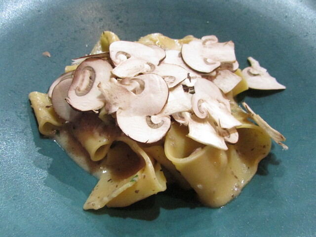 スパゲットーニ、モッチモチ(^_^)。茸の風味が利いてる〜(^_^)