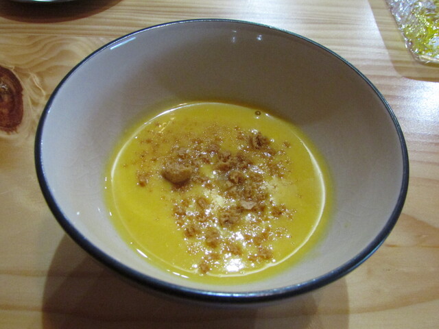 ・お口初め〜西区のかぼちゃの冷製スープ 焼き芋のニョッキ