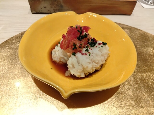 ・牡丹海老の紹興酒漬け 卵黄 雲丹
