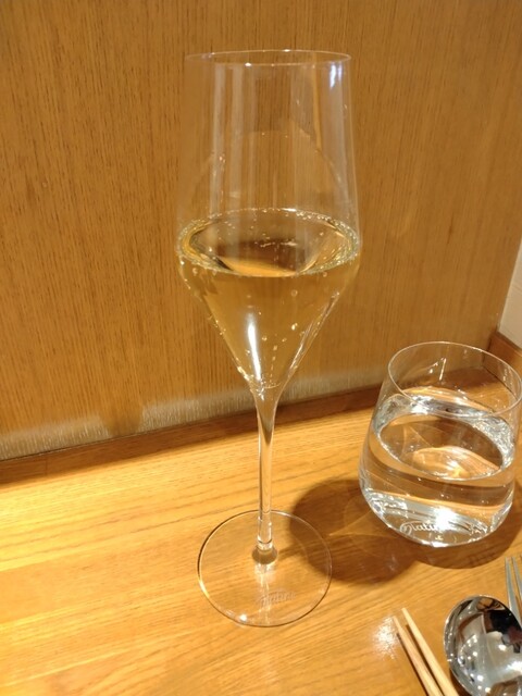 プレオープン中のワンドリンクプレゼントでいただいたスパークリングワイン