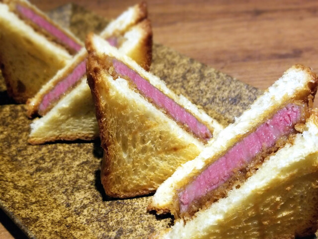 前回行った「うしみつ一門目黒店」で一口サイズを無料サービスで頂いて以来、また食べたいと恋い焦がれていたカツサンドと感動の再会!