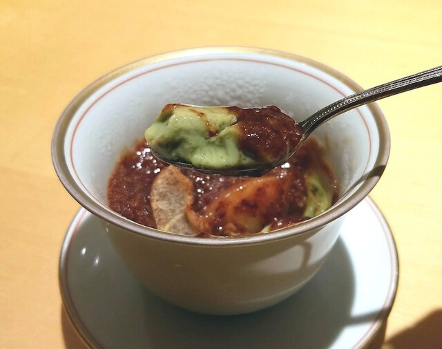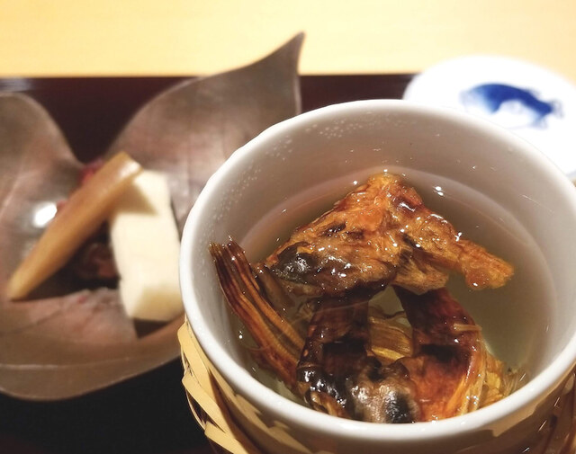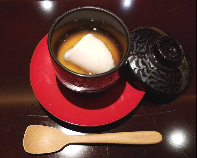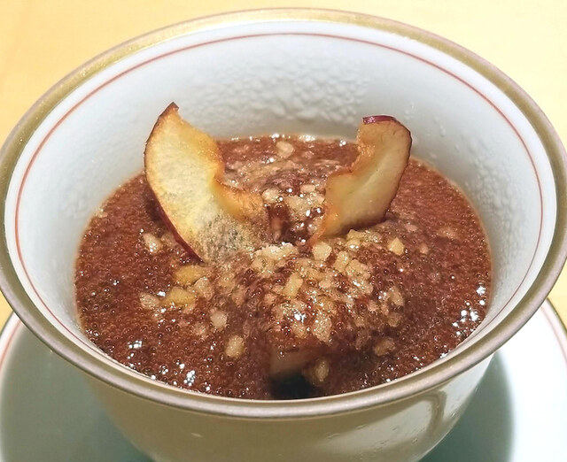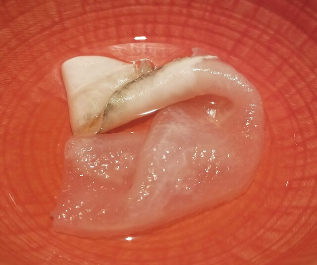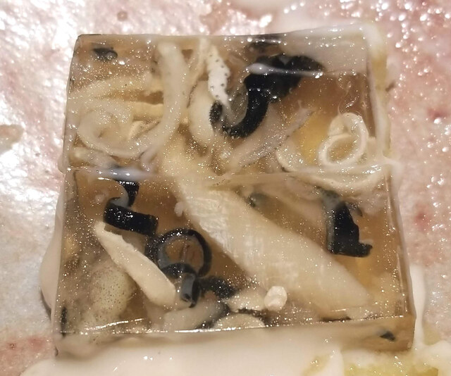 この美しい煮凍りは体温で溶けると伺ったので、口の中に入れて変化する食感を楽しみながら頂きました。