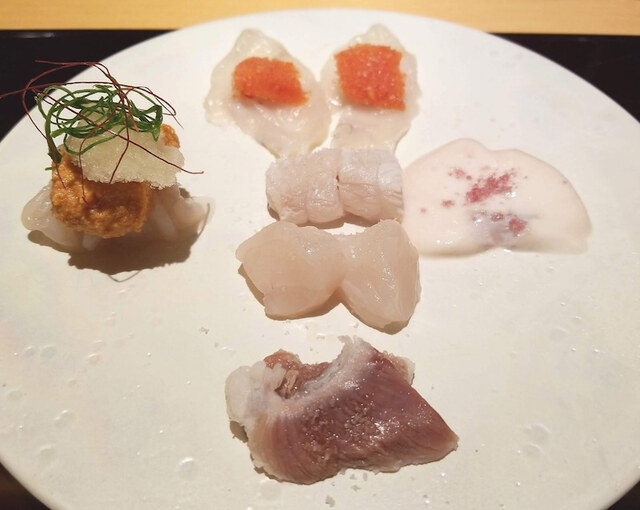 右:白子刺し(ピノノワールの塩でとろりと)