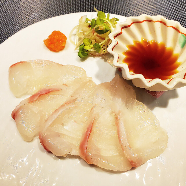ぷりぷりの真鯛で薬味を巻いていただきます。
