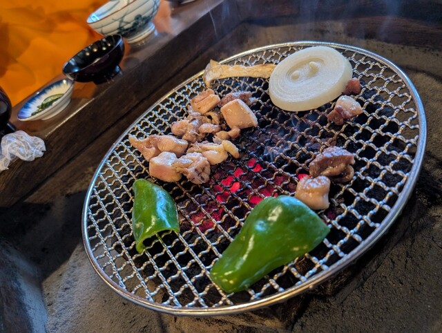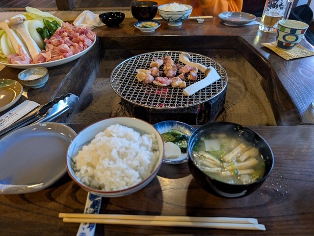 ここでは、お客さん自身が炭火を囲んで焼きながら食事を楽しめるんです...!
