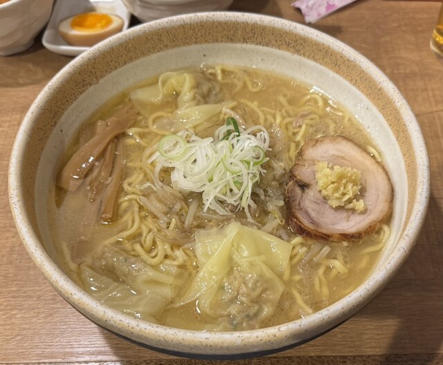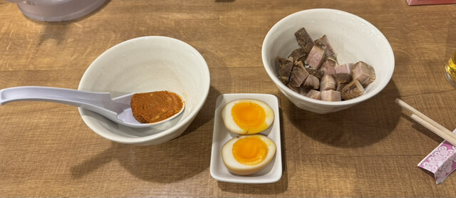 2025年10月はわんたんWにしてしまったシリーズ。上野の博物館美術館系に行った後こちらに来る事が多いですが、国立科学博物館だと9:00開館で早いので、開店前とか少し後に着けるので早く入れて嬉しいななのは「らーめん 福籠」さん。いつも頼むもの決まっているわけですが、今回はふと思ってわんたんWにしてみました。はじめての体験です。「味噌ラーメン大盛」「わんたん」×2「辛味噌」「コマ肉」「麦酒」とやりたい放題無双。で、ジェレミイにブツクサ言われるまでがセットです。店員さんに食券渡して麦酒とこま肉と辛味噌先に出してもらう様お願いしてカウンターに通されます。程なく両者到着です。おおう。こま肉に辛味噌つけて麦酒が旨い。この日はPPだったせいか、らーめん早めに出てきました。わんたんの為の麦酒が残ってる。ワンタン×麦酒も味噌らーめんも美味しかったのでジェレミイのブツクサも心地良いメロディに……にはならないですケロリン♪