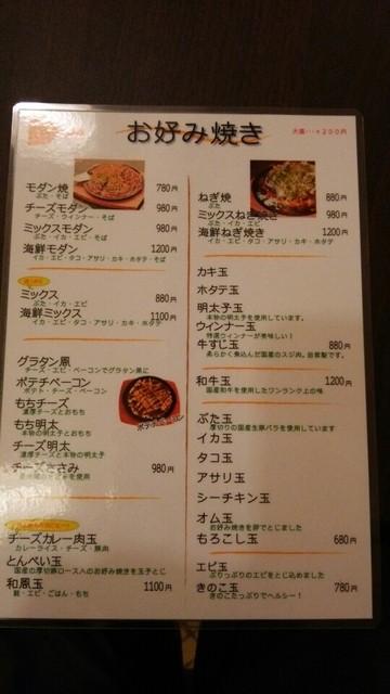 お好み焼きメニュー♪