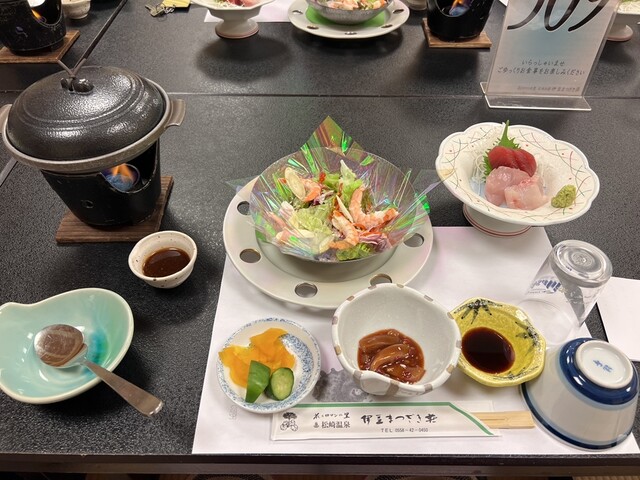 夜ご飯は魚介を中心としたメニューでボリュームもあり大変満足な内容です