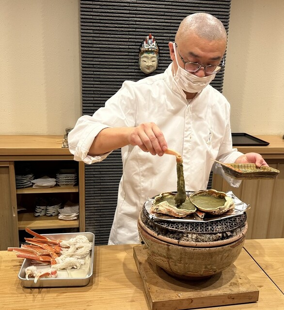 しかし、「本物の職人の技」というフィルターを通した時、松葉蟹という食材はまったく別の次元へと昇華されます。松葉蟹の「焼き」「刺身」「しゃぶしゃぶ」「フライ」「蟹味噌」「出汁」のフルコースなど、一流の料理人でなければ提供できません。素材を理解し尽くして仕立てる「本物の職人技」は、まさに別次元です。