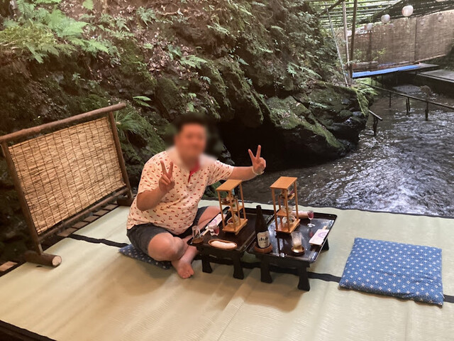 気温は34度あったんですが、川床は信じられないかもしれませんが