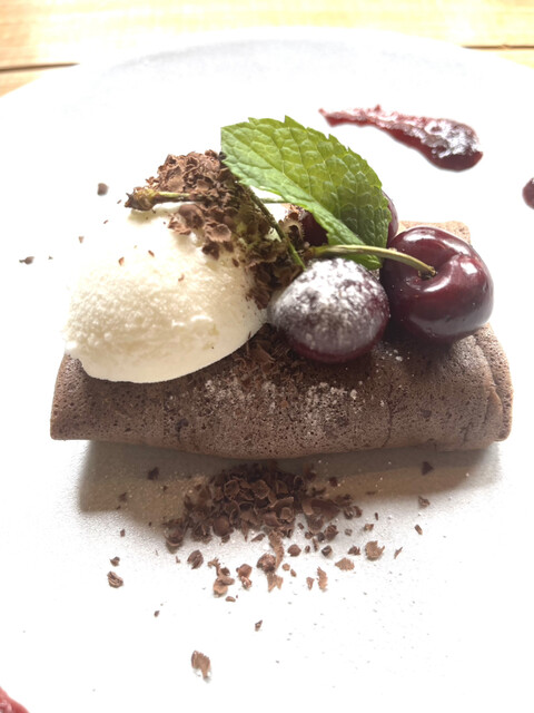 ガレットのパリっと焼けた蕎麦粉の香りと