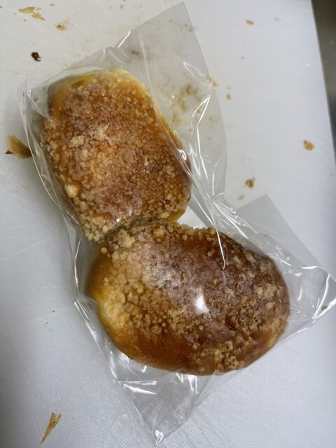 ピーナッツペーストとクラムの菓子パン。ある意味で王道の美味しさ。2くちで無くなる(笑)