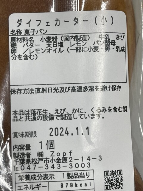 ダイフエカーターという菓子パン。内相が詰まっていて食べ応えがある。これはお勧め‼️