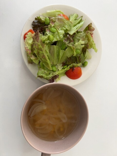 野菜スープかサラダをチョイスなので、スープを選び、ランチドリンクにはアイスティを。