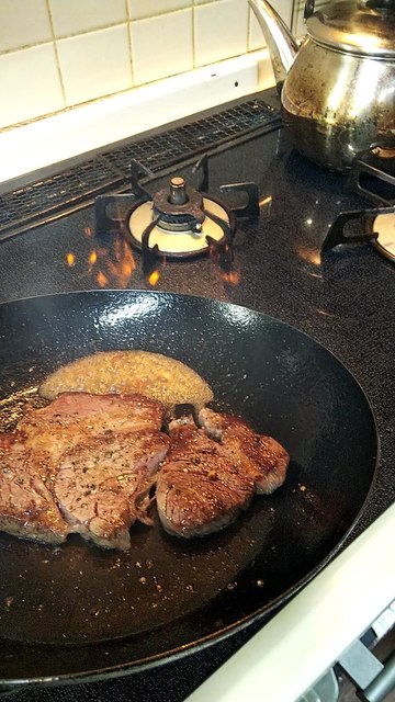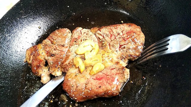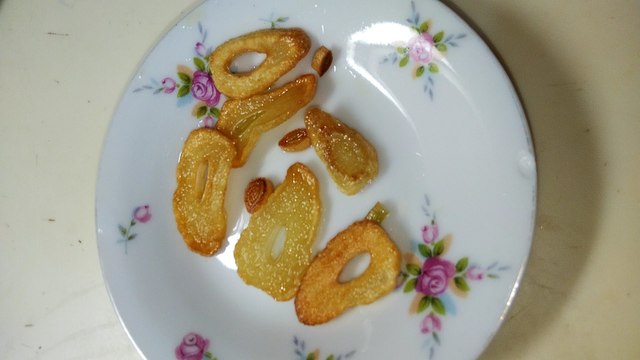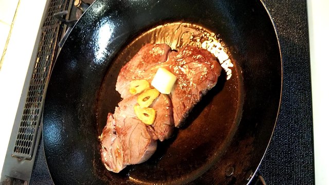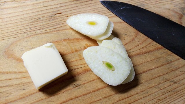 濡れ布巾で冷ました後でバターと大蒜を載せます。