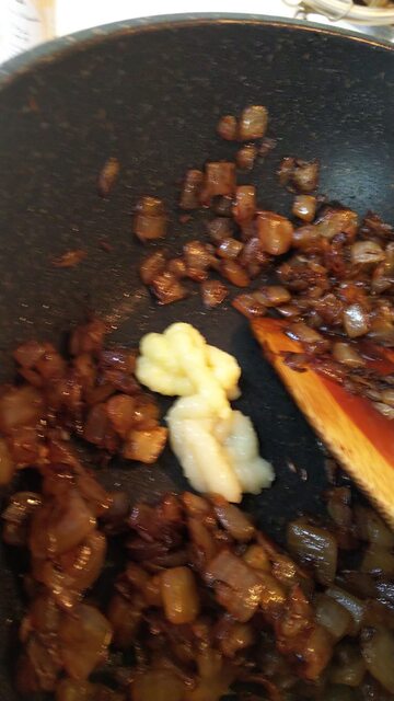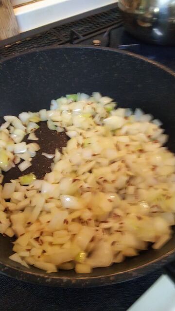 クミンシードを炒めて香りの出たトコでタマネギ投入。
