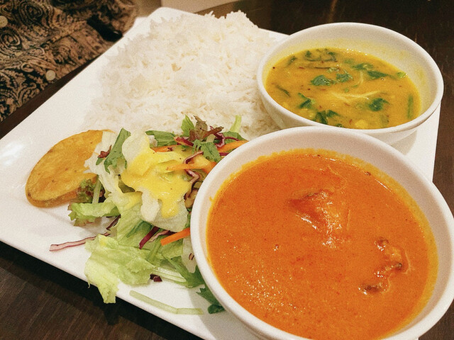 シーフードはしっかりした海の味わい、バターチキンはバターのクリーミーさとトマトがいいバランス!