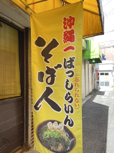 沖縄そばはスタンダードな沖縄そばで、三枚肉(甘辛く味付けした豚の角煮をスライスしたもの)をトッピングしたもの。