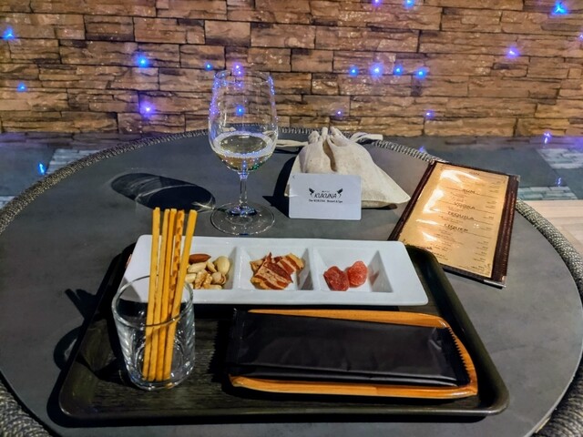夜はセルフで気になるワインをテラス席でいただくことが出来ました。