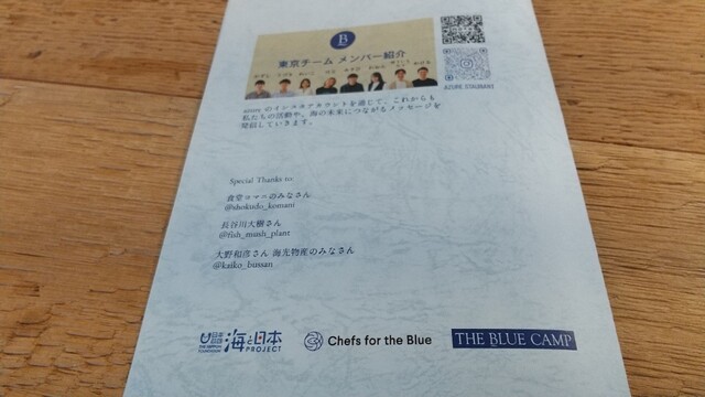 “次世代”の学生やシェフの卵さんたちとトップシェフがともに海の未来を考え行動する『THE BLUE CAMP(ザ ブルー キャンプ)』、この取り組みの集大成として開催された「海の未来をつくるレストラン」・azureにお邪魔しました(*^O^*)♪♪♪クラウドファンディング10,000円に対するリターンとしてのランチコースでしたが、想像以上のお料理、空間、皆さんの想い溢れる説明・プレゼンの熱意、全てに感動しました♪♪♪。゚(゚´Д`゚)゚。♪♪♪未利用魚、という呼び方は違和感があり、海の原石なんですというお話が特にとても印象的でした♪♪♪(*T^T)♪♪♪