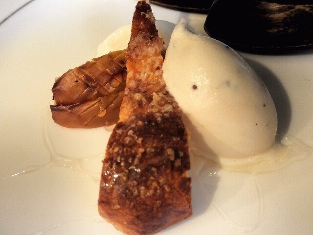 ⇒椎茸柔らかく、白子のカツレツの食感楽しく旨味弾ける逸品。リンゴソースのアクセントも◎