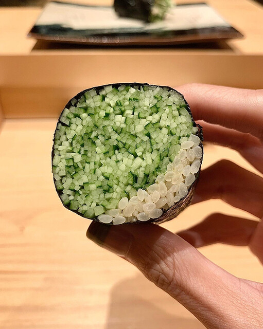 握りは1貫目の中トロ腹側に、中トロ背側、