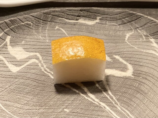 鮨に切れ味がどう作用するのか予想ができなかったが、断面が驚くほど滑らかで今まで味わったことのない握り。