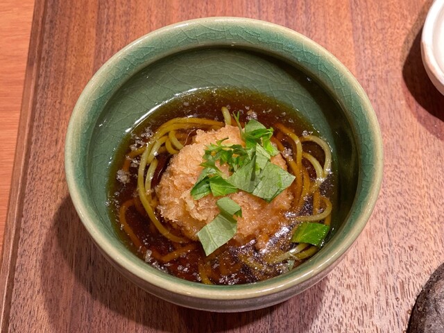 メンチカツもお出汁と合わせると意外にあっさりと食べられる。