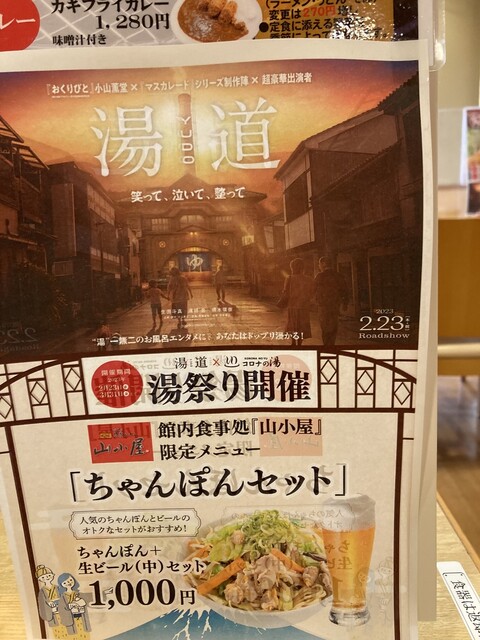お風呂と健美効炉と810円以内の麺類のセットで1850円。