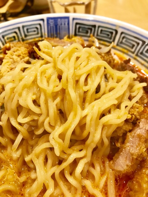 細麺だ。何となくゆで汁の味がして素直な麺だ。ラーメンのアルデンテとは違うが美味しい。野菜の茹で汁も効いているもやしの旨味がわかる。スープは複雑な味で美味しい。星エビも入っている。どんどん美味しくなるな。素敵な担々麺だ!ラーメンとは違うのだよ、ラーメンとは…と感じさせてくれる。