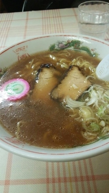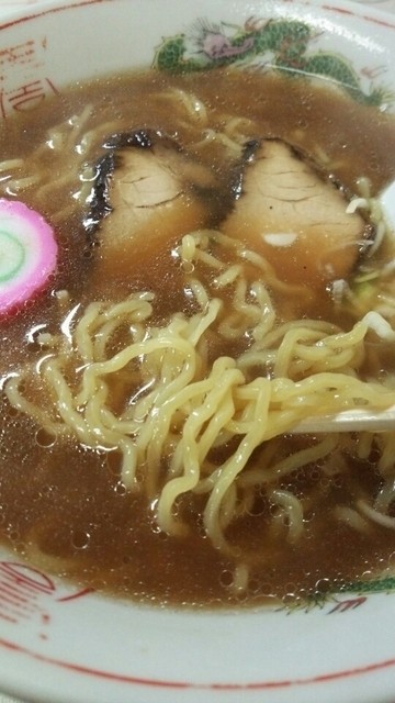 スープは強く動物系を感じない程度のガラベースだ。醤油だれは至ってマイルドで、定食屋さんのラーメンとは思えない出来である。やはりこのお店はただ者ではないな!!