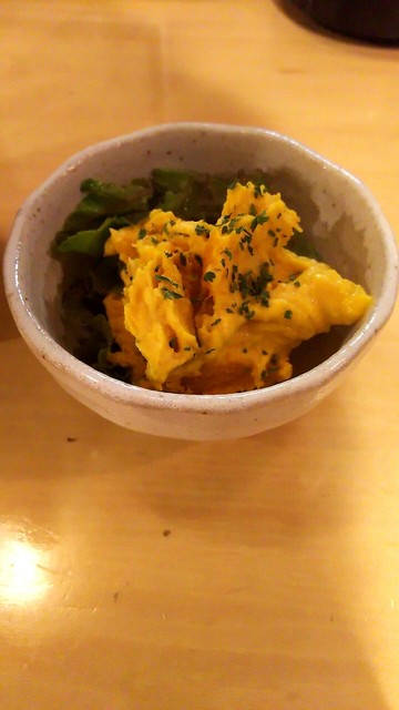 お通しはカボチャのサラダ。