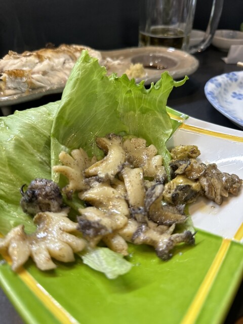 水槽の中から取り出して生きたままの鮑はソテーで。