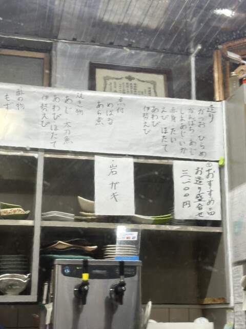 とりあえず、カウンター前に貼られてるメニューで目に入ったお造盛り合わせ(こちらは値段表記されていて3100円)を注文。