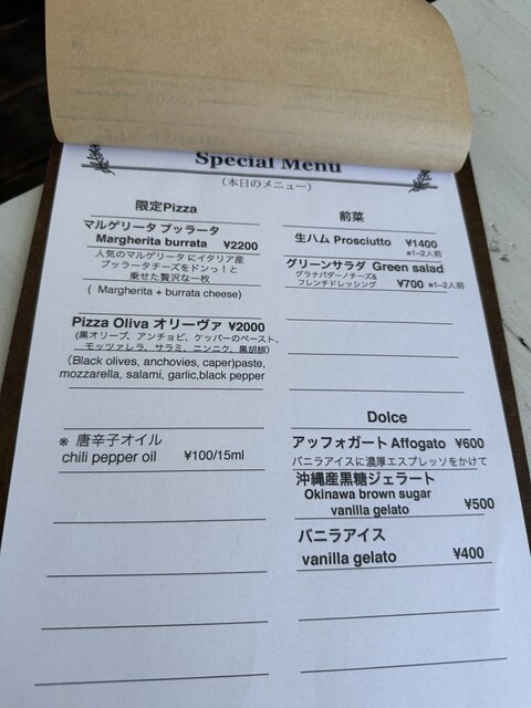 ◾️パルミジャーナ(モッツァレラ、バジル、ナス、ハラミ) 1800円