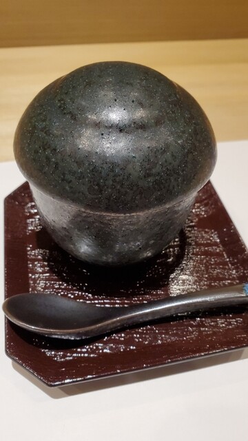 さて、いよいよお鮨ですよ。なかでも、ノドグロと金目鯛が旨かったなぁ♪︎(๑´ڡ`๑) シャリは小さめで食べやすい大きさになっています。半ばで、原木椎茸と茄子の揚げ出しが登場。椎茸と茄子って揚げるとホントに旨いですね(´ρ`) 脳ミソ♪︎プルンプルン(笑) 美味しい白子の茶碗蒸し。自分で巻くトロタクは面白い趣向ですね。