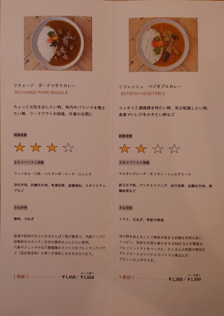 ※カレーは「レモンチキンカレー」と「ポークマサラカレー」