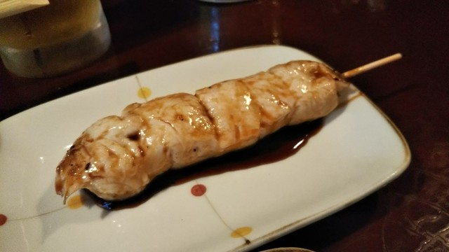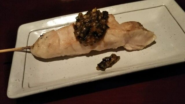 優しい味のお通しから、塩ささみの流れは正解でした♪シンプル味だけど焼きすぎない串!!焼き加減が絶妙なのです。タレも良かったけど…やはり塩かおろポンだな。