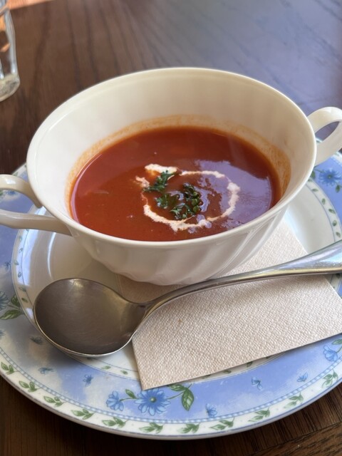 スープはかぼちゃでした♪クリーミーでかぼちゃの甘さがしっかりと味わえる