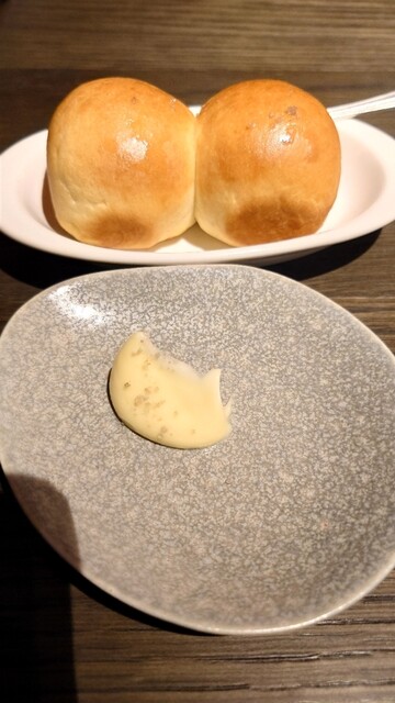 スモーククリームが濃厚なフェトチーネとホカホカのパン