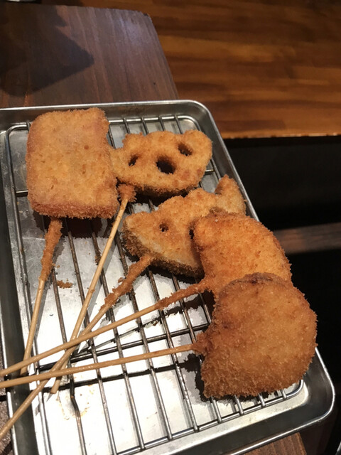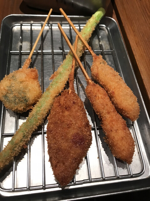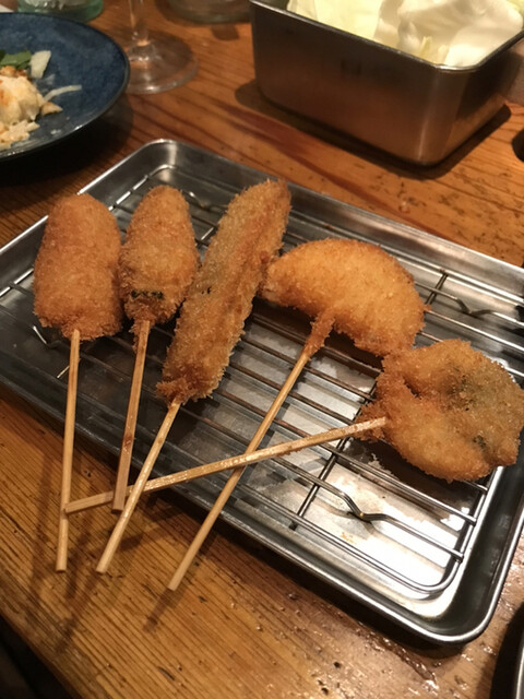 いつも満席なので予約は必要です。串焼きの素材は新鮮なものが使われているように感じます。串揚げ以外にも美味しいおつまみがたくさんあります。食べすぎてお腹がいっぱいになりますの