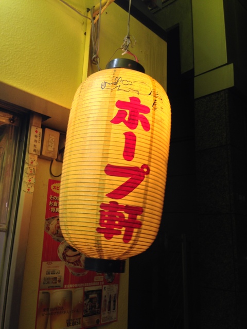 国立でサッカー観戦、神宮で野球観戦と言えばここですね。国立競技場、神宮球場、明治公園を背にして、外苑西通りの向かいの歩道に店を構えるホープ軒。お店の外に2台券売機があるので、先に食券を購入。1Fの立食いカウンターで食べる場合は、カウンターの上に食券を置きます。行ったことはありませんが、2〜3Fもあるようで、1Fで食券を渡して上ると、テーブル席があるようです。